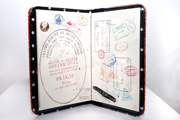 Alice + Olivia’s invite came in a faux-croc passport case you can actually use for your passport!