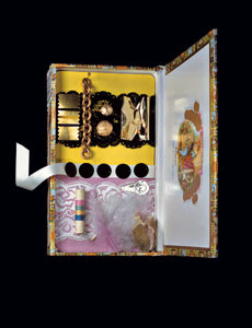 There are no descriptions or captions on her website of what each design is, so I’m not entirely sure what these were for, but I’m assuming that she created these little faux notion kits as imaginary versions of what each of these designer’s notion kit would look like if they had them.