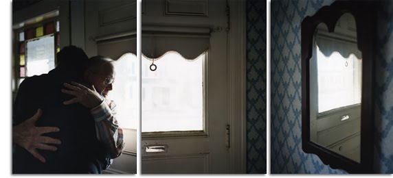 The tryptich format also suggests more of a story-telling element than would a single shot, as he directs the viewers eye from frame to frame, creating a narrative.