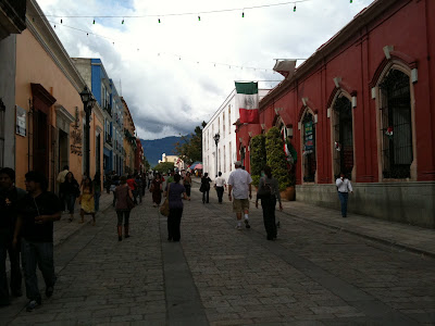 As you can see in the photos, Oaxaca is beautiful! The photos above are near the town center, where we stayed, and the photo below is out in the country, where we drove to meet the rug producers. I couldn’t get over the big, open sky and the mountains in the distance.