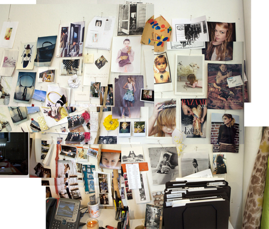 Above and below, perennial favorite Jenna Lyon’s office bulletin board.