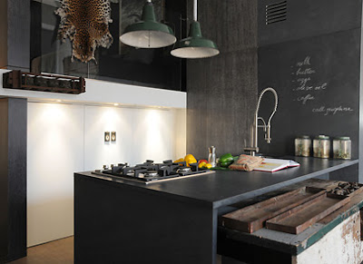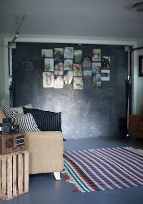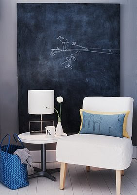 Above, in a modern setting, it looks perfectly clean and contemporary, while below, in a more bohemian room, when covered in tear sheets and lots of eraser marks, it looks casual and artsy. (Also, brilliant way to allow kids to write on the wall. Oh, and I love the shelf that goes above the door in the photo above.)