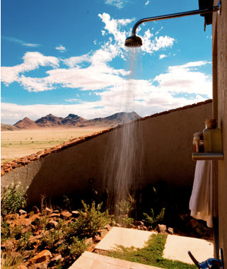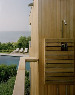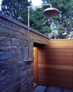 this article in Travel + Leisure about the “world’s sexiest hotel showers” has had me thinking about them recently. Out of the fifteen showers T+L selected, only a few were outdoors! I couldn’t believe it. I think an outdoor shower is one of the best bathroom-upgrades a house or hotel room could have… There’s just not much better than taking a shower under the blue sky (or stars) with a breeze grazing your skin.