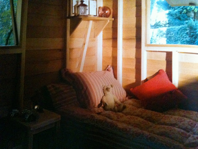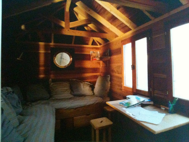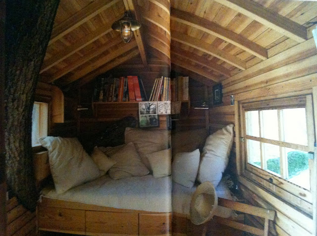 Maybe my favorite interior shot from the book– love that the tree is coming through the wall, the cozy built-in nook, the bookshelf, the totally simple cushion and pillows…
