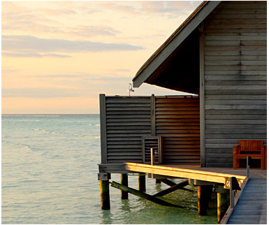 At top, the Sossuvlei Desert Lodge in Namibia. Above, Cocoa Island, Maldives.