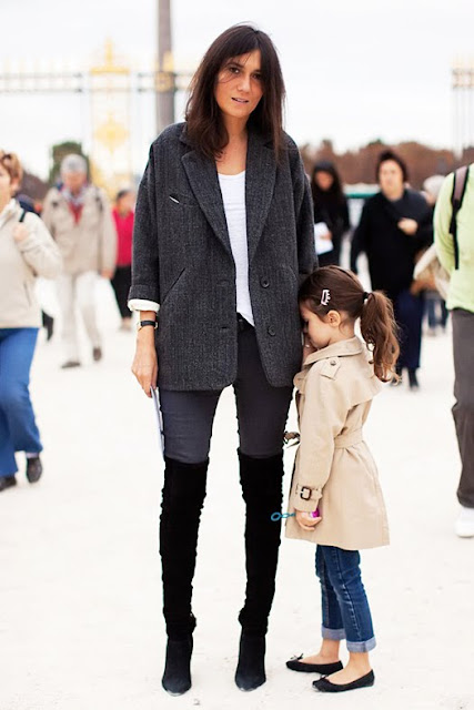 Cuffed jeans, trench, striped tee, and flats? Seriously? Does Emmanuelle dress her or is that just genetically inherited style right there? Either way, I don’t care, I want to steal her. She couldn’t get ANY cuter.