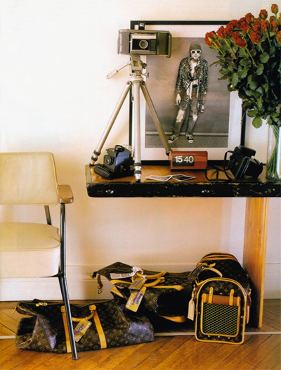 I’ve had a bunch of images of Marc Jacob’s apartment saved for a while, and when I went to create this post, I realized that they didn’t all look like they came from the same apartment… and then I realized that the shots that show Marc himself showed two very different Marcs. Interestingly, they are of his first and second Paris apartments, before and after his transformation into a tan, fit, and meticulously groomed version of himself. Here, his first apartment.