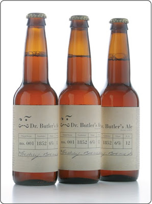 Ok, it’s not a wine, but I couldn’t resist sharing this beer, “Dr. Butler’s Ale,” whose labels are all faces made of characters from the Bodoni font. A student project by Ashley Lewis, the different faces are meant to represent the multiple crazy personalities of Dr. Butler, who was an infamously nutty “doctor” in England and used his ale as a cure for many ailments.