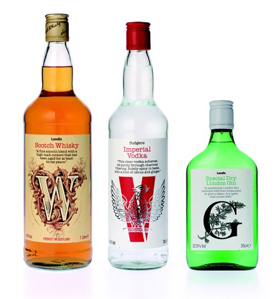 Again, not a wine, but thought this concept was clever — they used the first letter alone of each type of liquor to totally create it’s identity. And it works! They all have a totally different feel, communicated solely by the design of the letter.