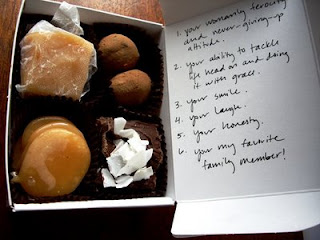 LOVED this cute idea from Eating is Art– she decortated this box and filled it with things she loved about her husband and things he loves. (Recipes included in the link too.)