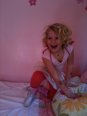 We woke up this morning and ate Jelly Beans, applied her heart tattoo, picked out her outfit, and had a dance party …all before breakfast.